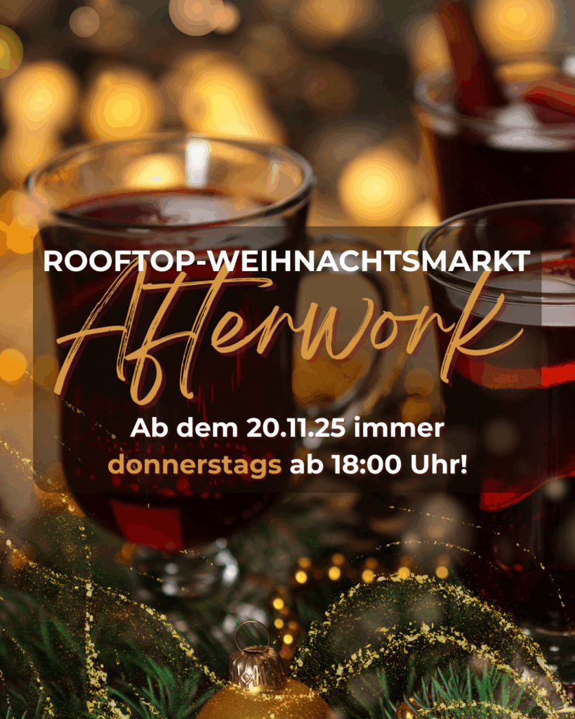 Ob mit Kollegen, Freunden oder einfach zum Abschalten – unsere Afterwork ist dein wöchentlicher Glühweinmoment über den Dächern der Stadt.
